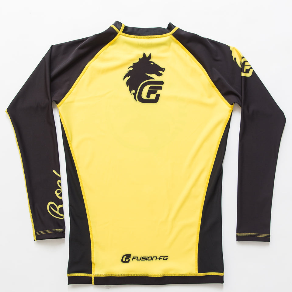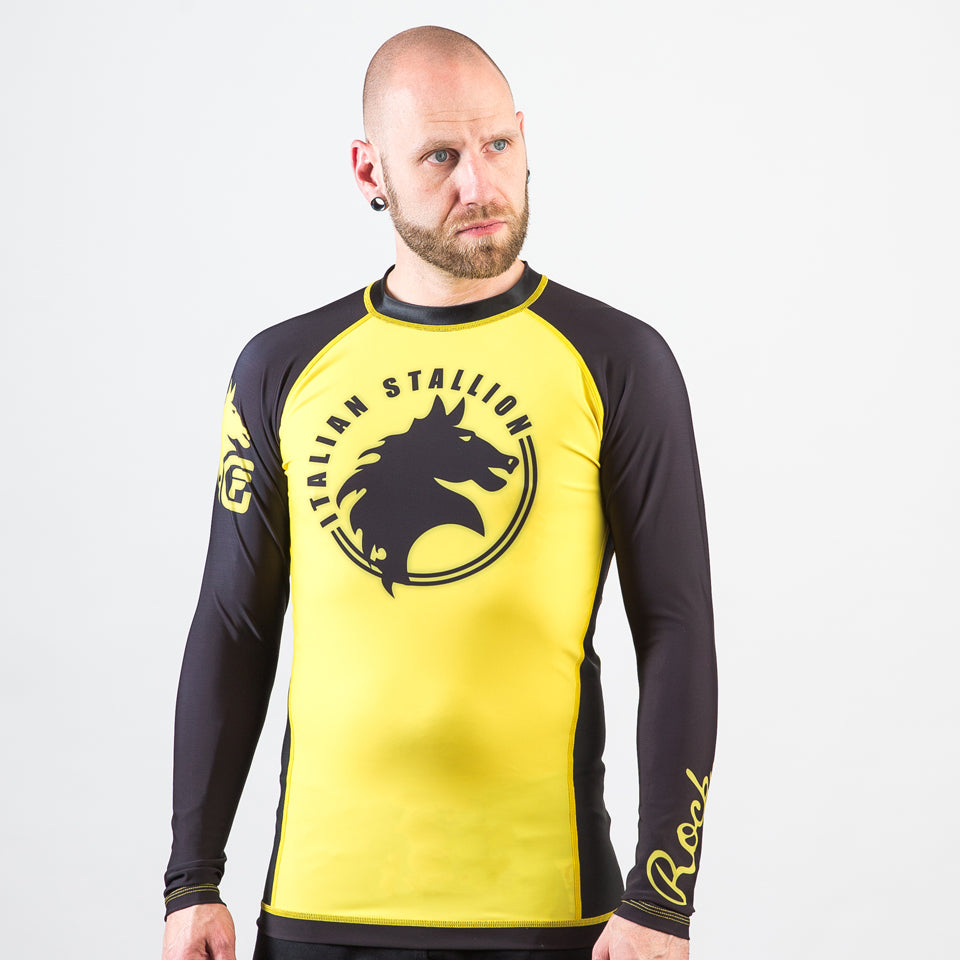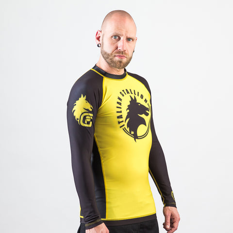 Fusion Fight Gear Rocky Italian Stallion BJJ Rash Guard- Yellow and Black (RETIRED)