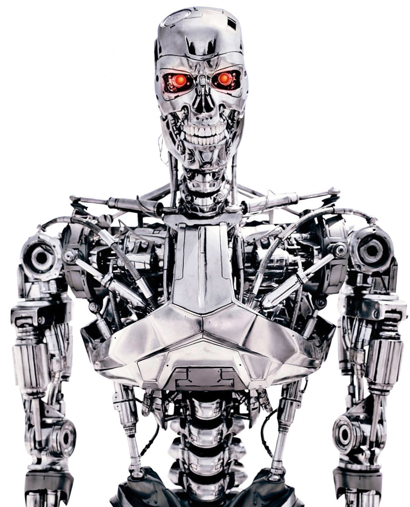 The Cyberdine Systems Series 800 Terminator, better known as a T-800, is a mass produced killing machine manufactured by Skynet. Add a little skin to him, and bam...he looks like Arnie!